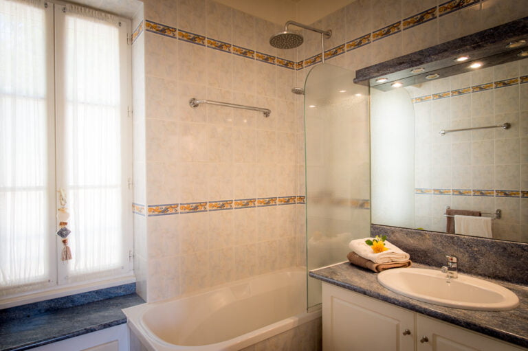Mit den frischen Produkten, die Sie im Supermarkt auf der anderen Straßenseite kaufen, können Sie das Kochen in Ihrem eigenen Ferienhaus genießen. Der Salon verfügt über ein Sofa, zwei bequeme Sessel und einen Esstisch mit 4 Stühlen. Ein luxuriöses Badezimmer mit Badewanne, Regendusche und Badezimmermöbeln mit Waschbecken und separatem WC runden das Bild ab. Durch die Salontür haben Sie Zugang zu Ihrer ganz privaten Sonnenterrasse (50m2) mit Gartenmöbeln, Sonnenschirm und weitem Blick über die Dordogne.